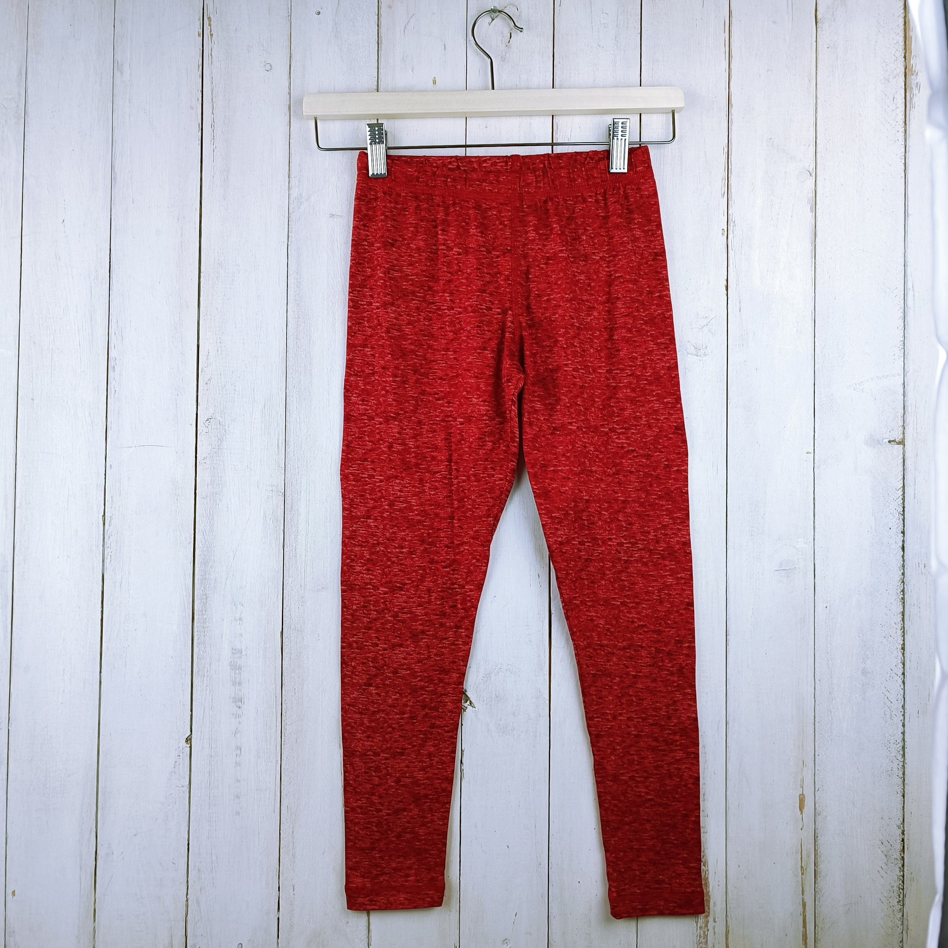 Calza Athletic Works T8 Roja y jaspeado blanco.