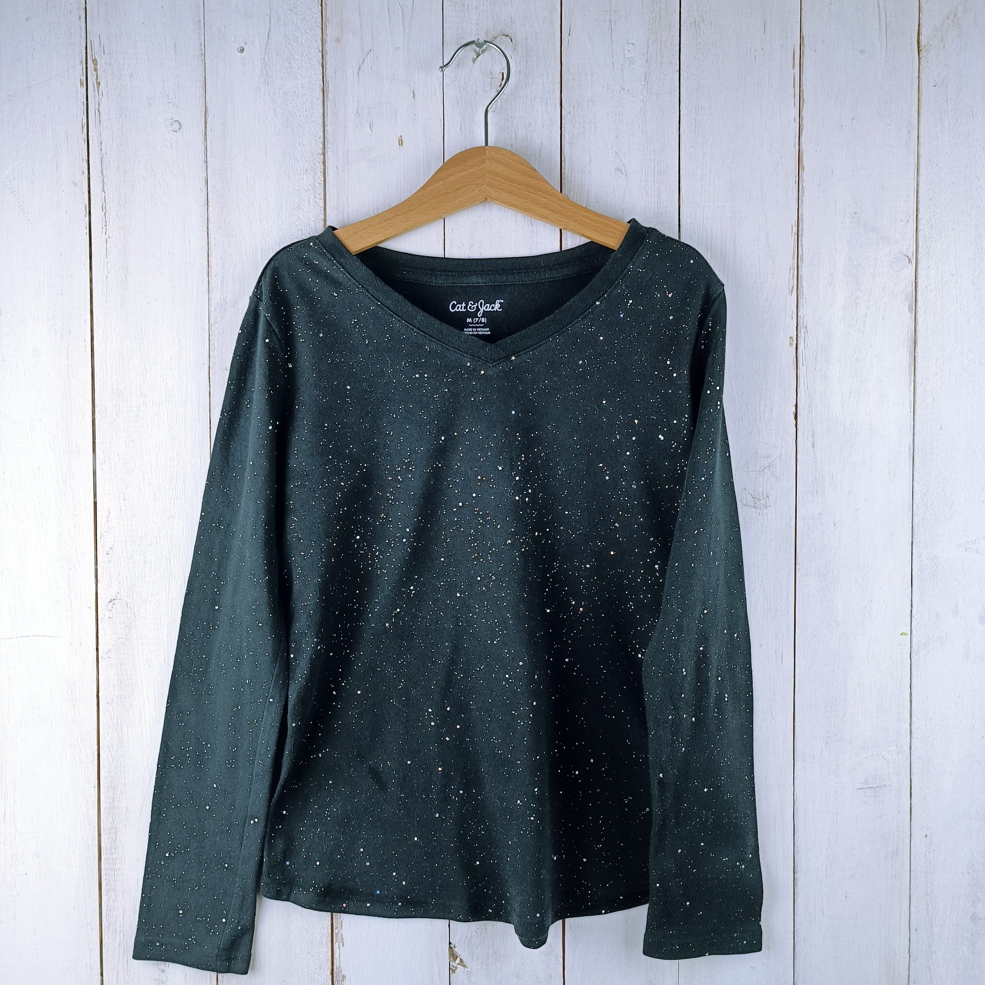 NUEVA Polera Cat & Jack Talla 7-8 Negra. Brillos Tornasolados. Algodón y poliéster. PERFECTO ESTADO