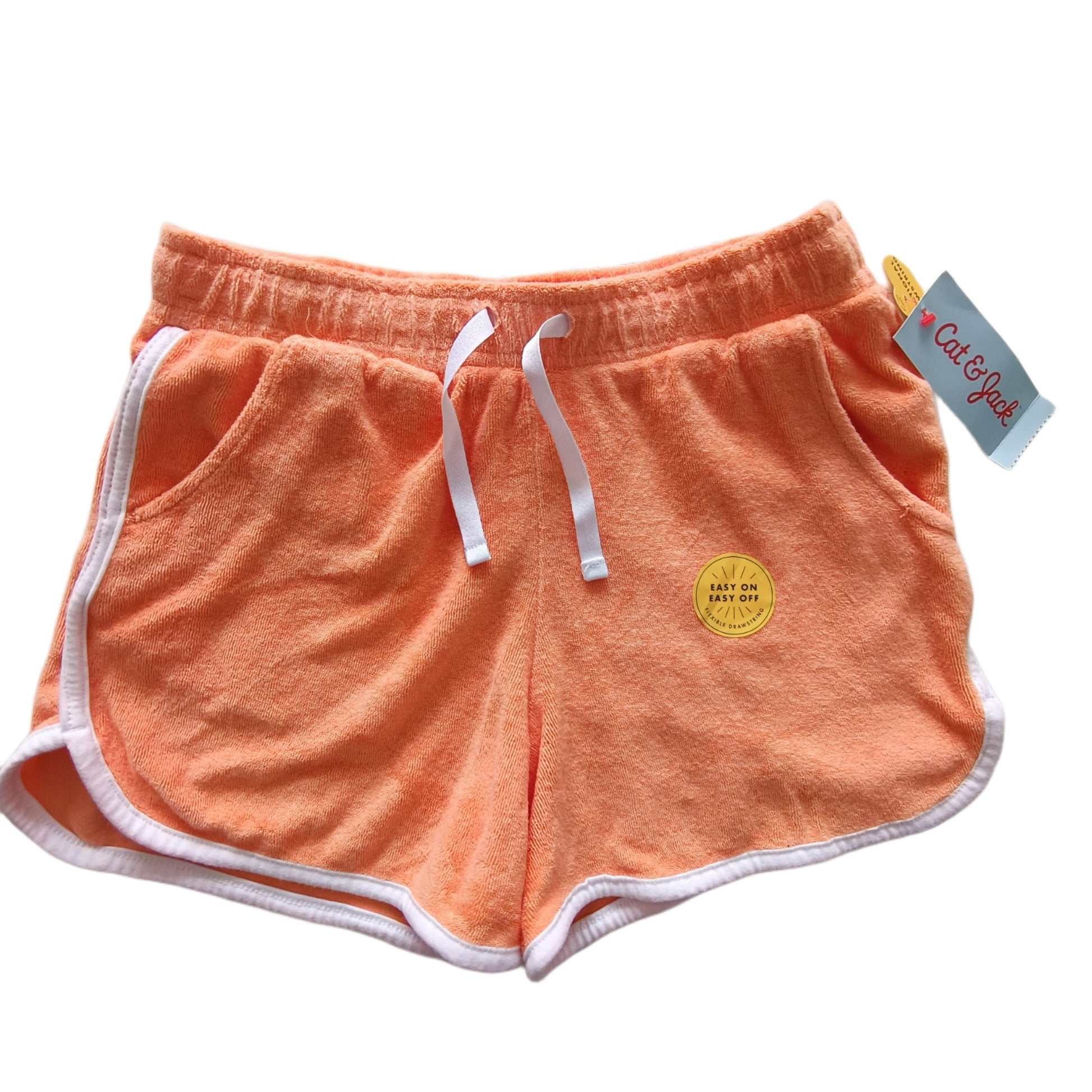 NUEVO Short Cat & Jack T10-12 Naranjo. Franjas blancas. Tela tipo toalla. Elasticado. Algodón y poliéster.