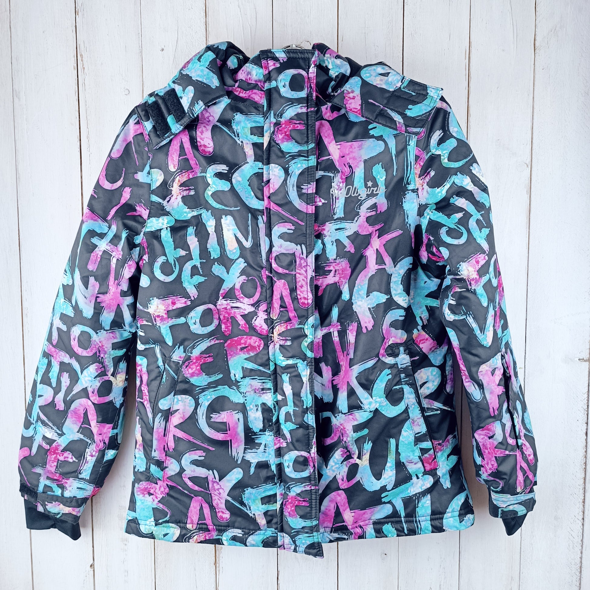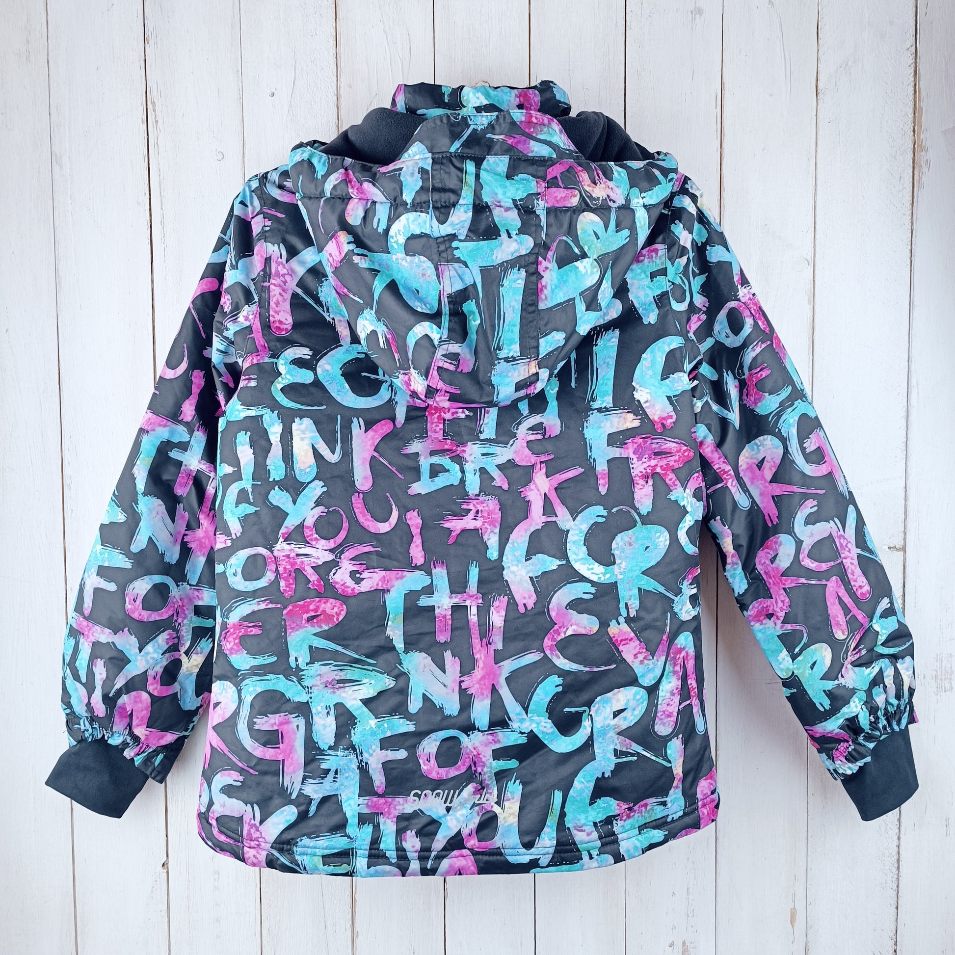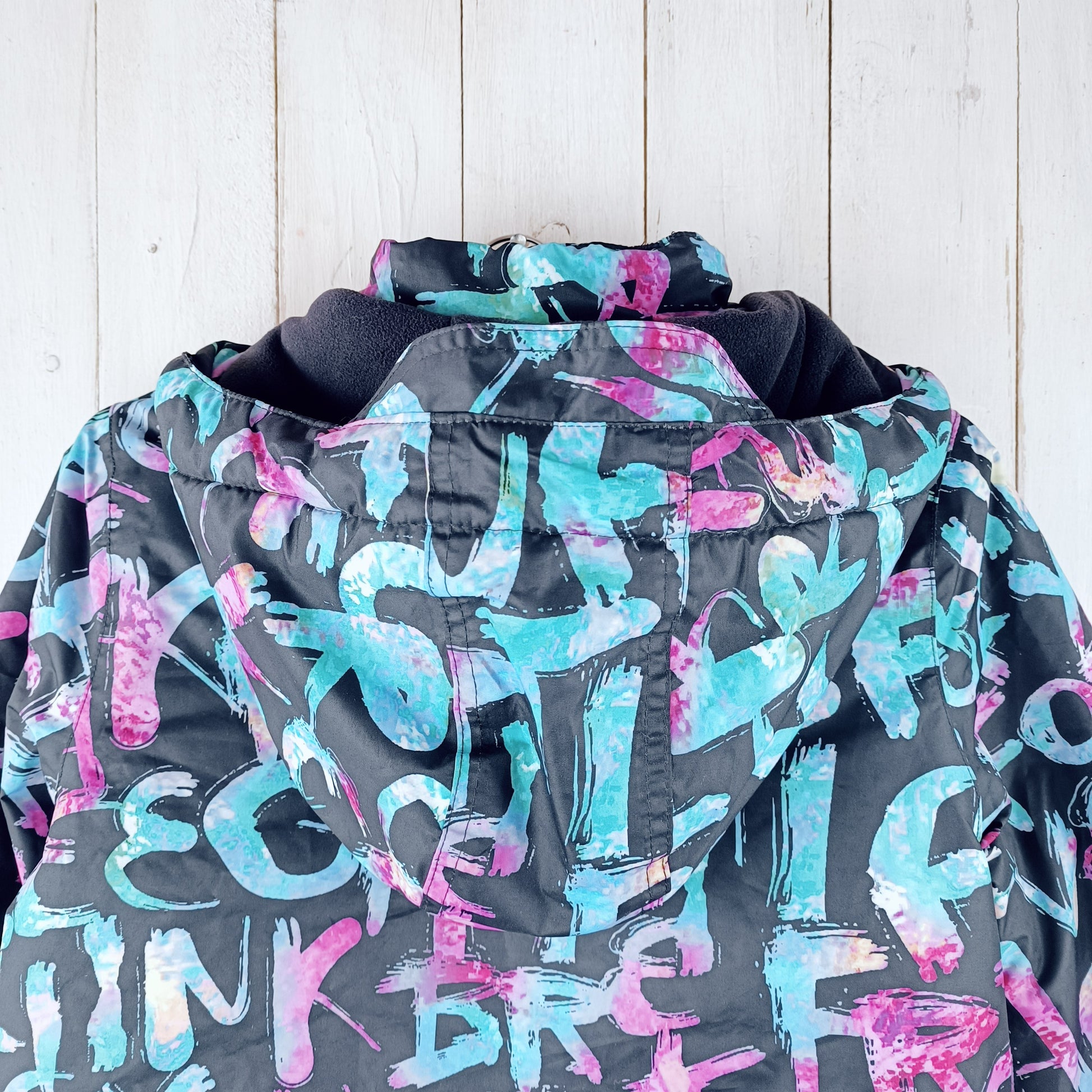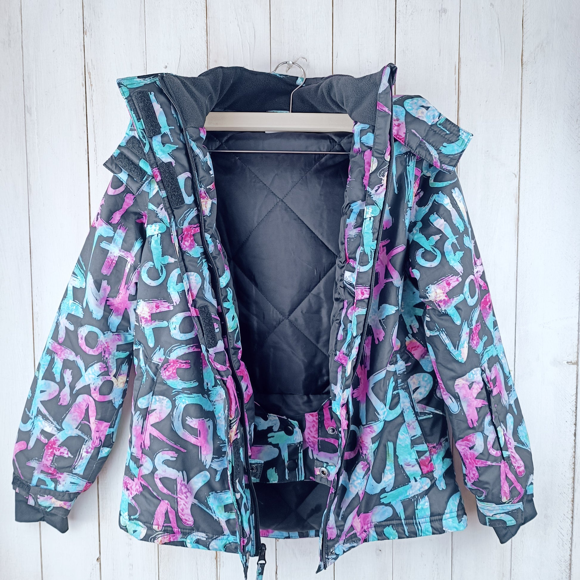 Parka Yigga Talla 10 Negra letras de colores. Con atrapa nieve