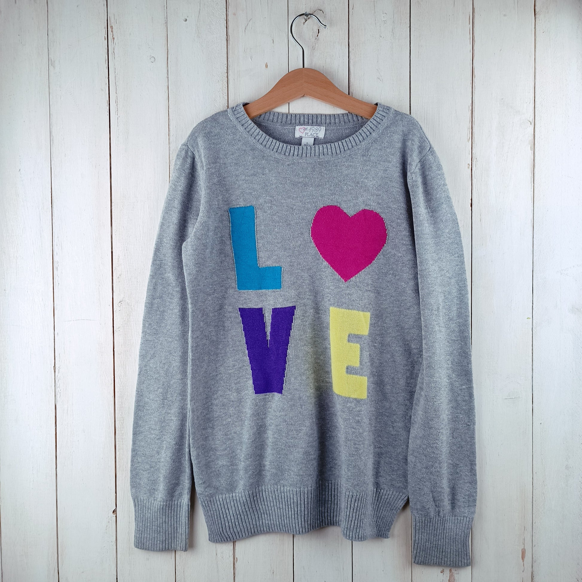 Sweater Place Talla 10-12 Gris Claro. Letras Love. Algodón y poliéster. Usado, buen estado.