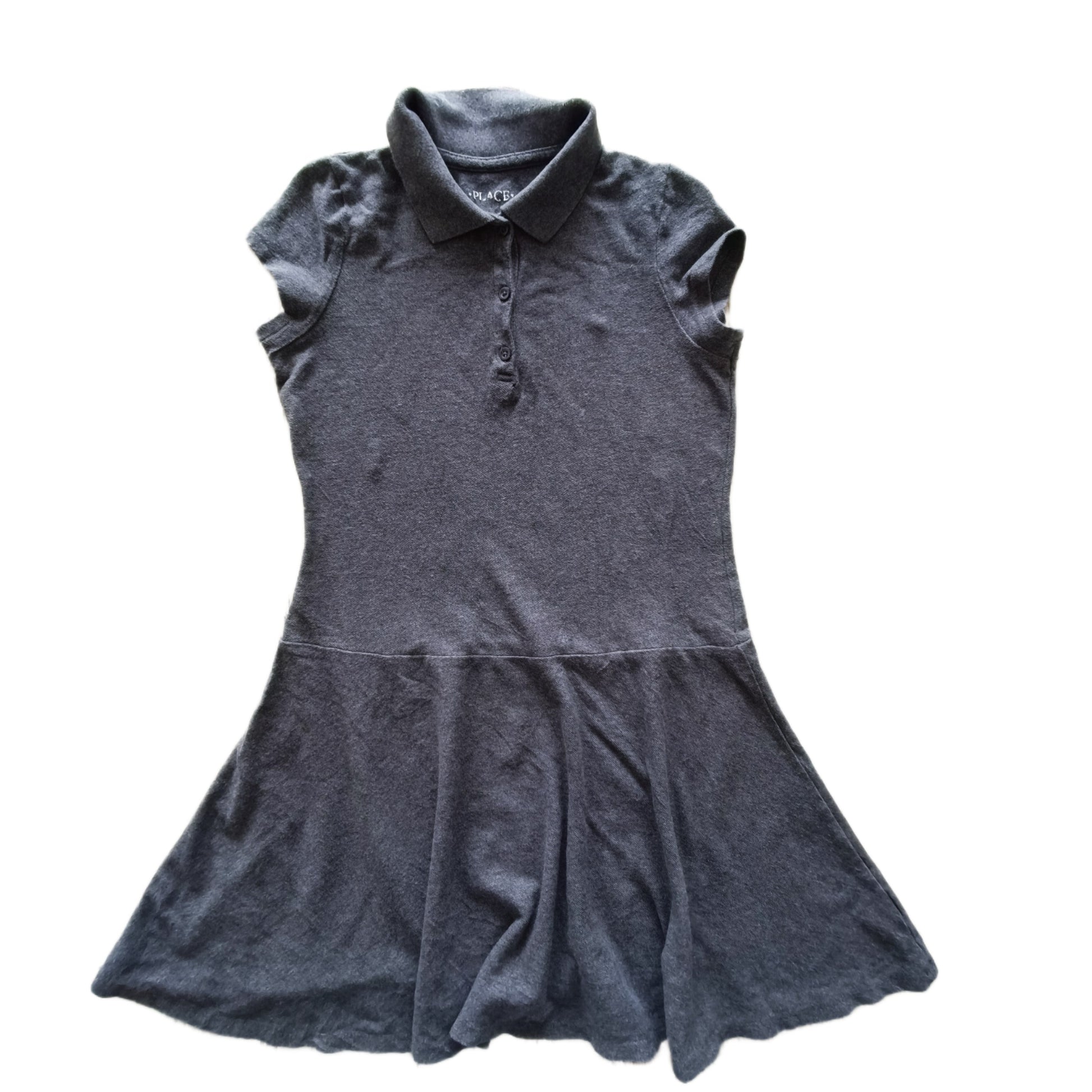 Vestido Place T10 Gris Oscuro. Tipo Piqué. Manga corta. Cuello con botones. Algodón y poliéster. Usado buen estado.